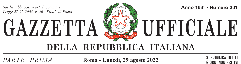 - https://www.gazzettaufficiale.it/eli/gu/2022/08/29/201/sg/pdf
