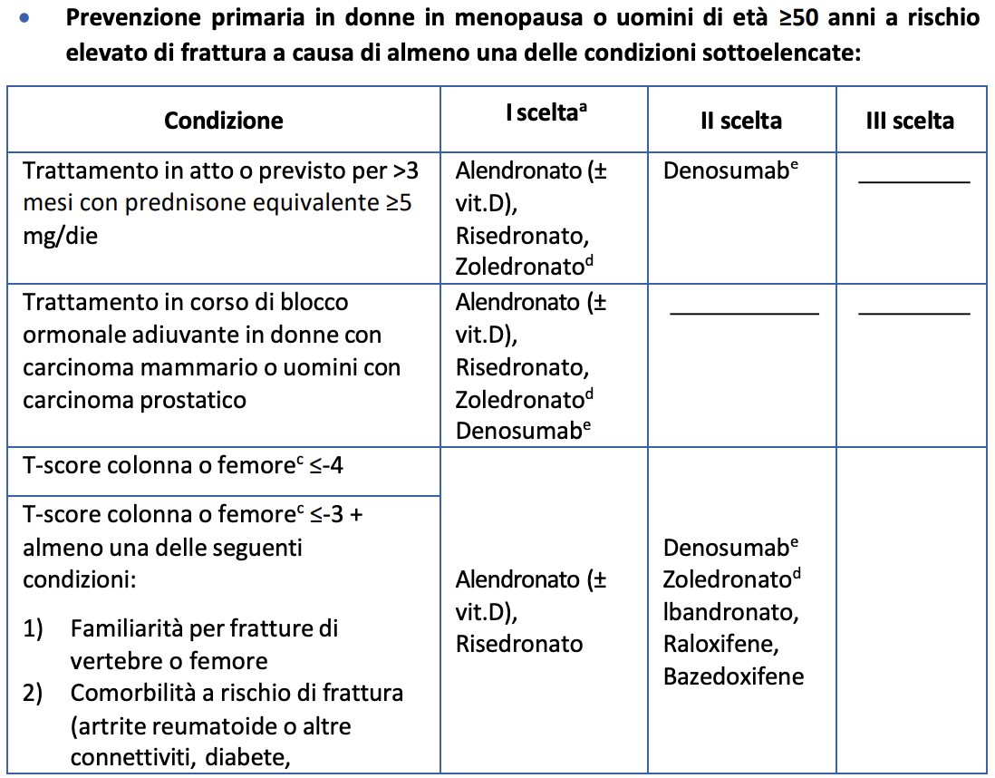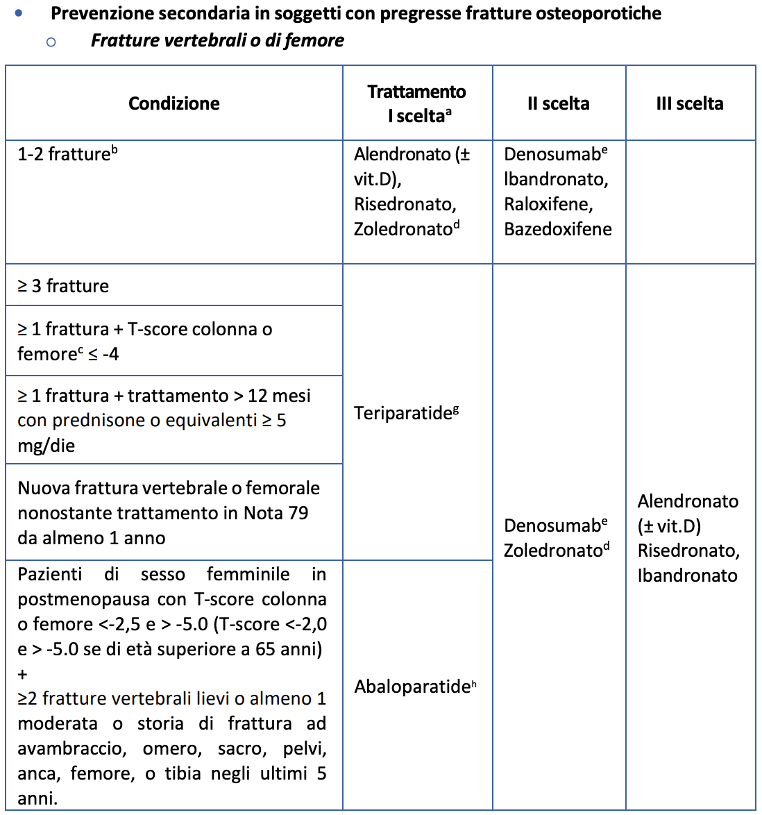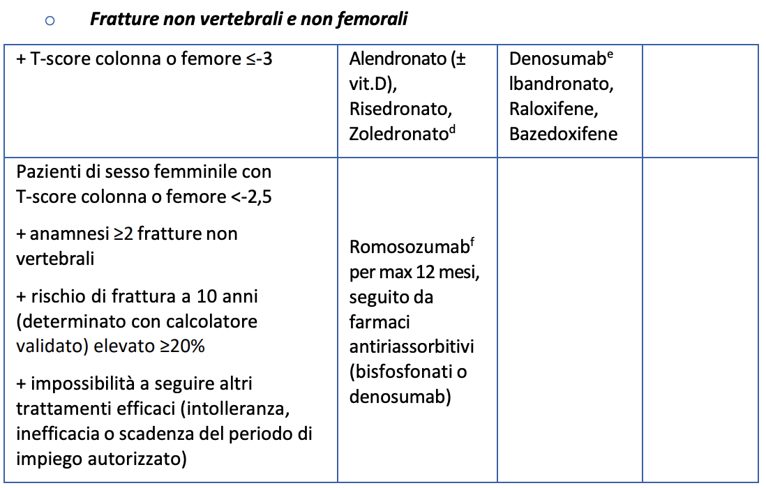• + anamnesi di ≥ 1 frattura vertebrale moderata o grave oppure ≥ 2 fratture vertebrali lievi oppure una frattura femorale nei due anni prima;
