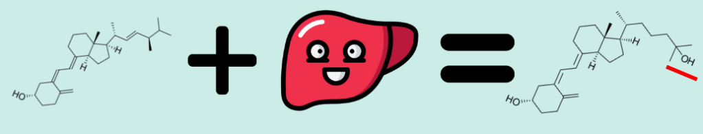 La vit D che assumiamo con gli integratori è quasi sempre in tale forma, ossia è colecalciferolo. Non è una forma di vit D subito attiva ed efficace, per diventarlo deve prima fare un piccolo viaggio.