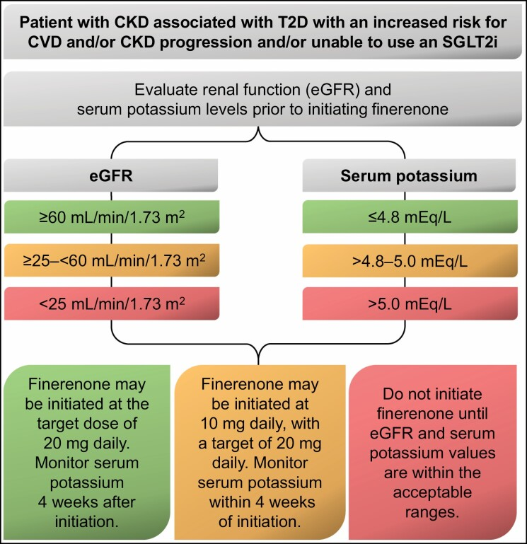 - comprovata evidenza di persistente albuminuria e/o rapido declino funzionale renale (perdita di eGFR ≥ 3 mL/min/anno), nonostante il trattamento con inibitori di SGLT-2.