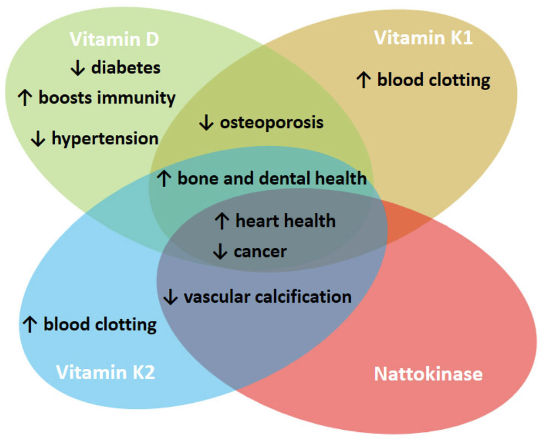 Gasmi, Amin et al. “Phosphocalcic metabolism and the role of vitamin D, vitamin K2, and nattokinase supplementation.” Critical reviews in food science and nutrition vol. 62,25 (2022): 7062-7071. doi:10.1080/10408398.2021.1910481