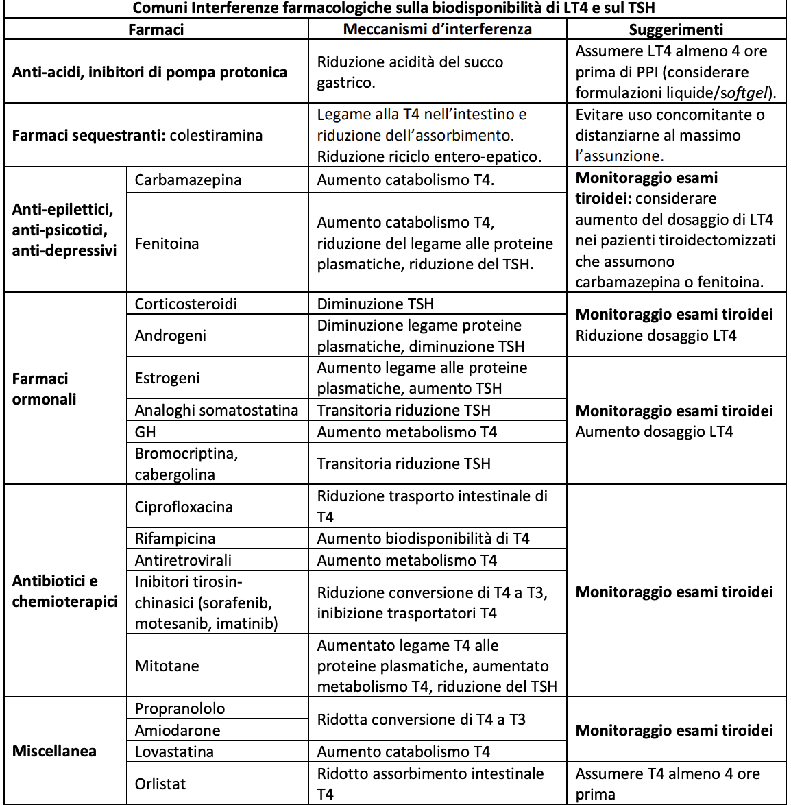 3️⃣ AUMENTO DEL TURNOVER O DELL’ESCREZIONE di L-T4 correlata ai farmaci somministrati per malattie concomitanti (estrogeni, androgeni, tamoxifene, glucocorticoidi, amiodarone, omeprazolo, rifampicina, fenitoina, fenobarbitale, carbamazepina, imatinib, orlistat…);
