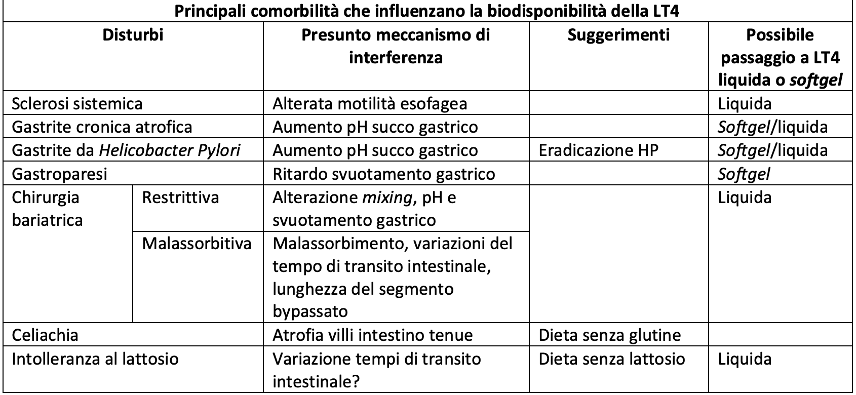 In questa circostanza, diversi possibili fattori interferenti dovrebbero essere considerati ed esclusi, soprattutto quando le dosi prescritte di L-T4 superano la dose giornaliera teorica calcolata in base al peso corporeo. Ecco i principali: