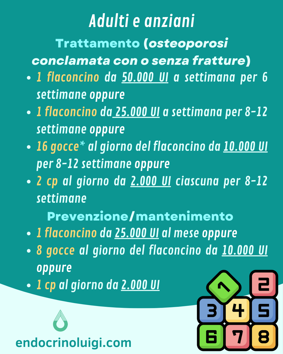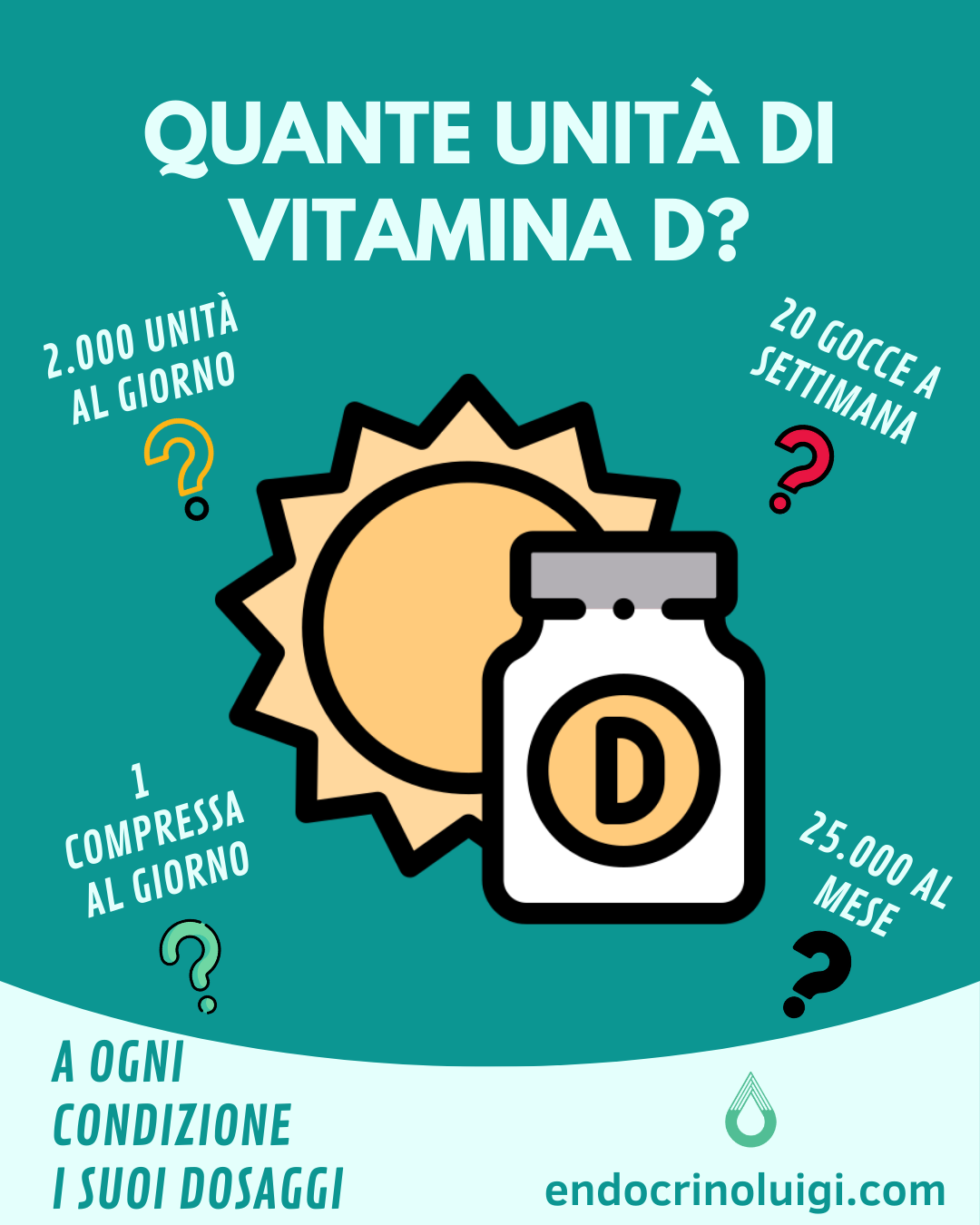 - I dosaggi che elencherò fanno riferimento alla sola forma di vitamina D chiamata COLECALCIFEROLO (la più comune in commercio) e sono ORIENTATIVI.
