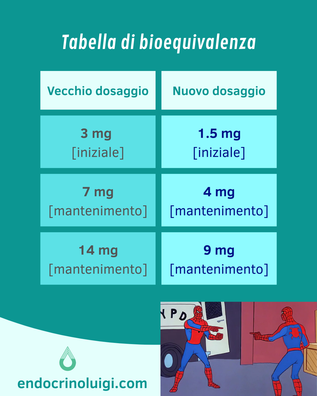 - Le due formulazioni saranno contemporaneamente disponibili sul mercato per un periodo limitato, quindi si consiglia di prestare particolare attenzione per scongiurare il rischio di sovradosaggio.