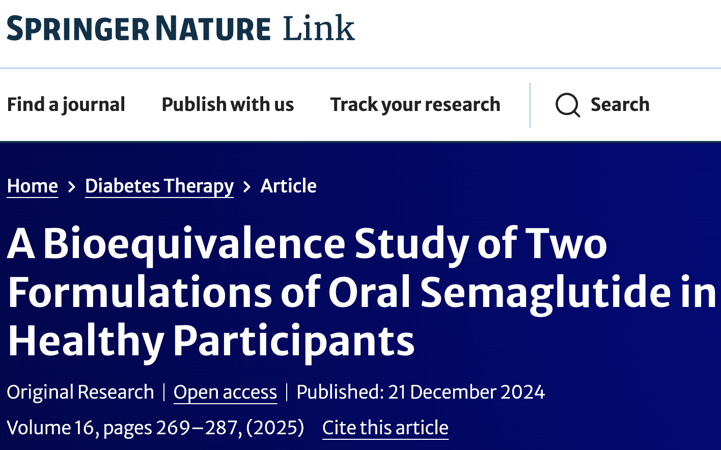 - Nielsen, M.S., Brøndsted, L., Kankam, M. et al. A Bioequivalence Study of Two Formulations of Oral Semaglutide in Healthy Participants. Diabetes Ther 16, 269–287 (2025). https://doi.org/10.1007/s13300-024-01674-8