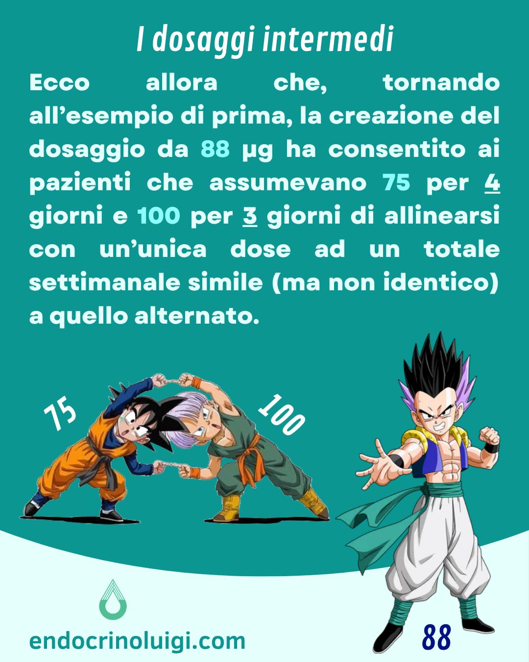 Potrebbe* passare a 63 mcg tutti i giorni, chi assume 50 mcg per 4 giorni a settimana e 75 mcg per 3 giorni