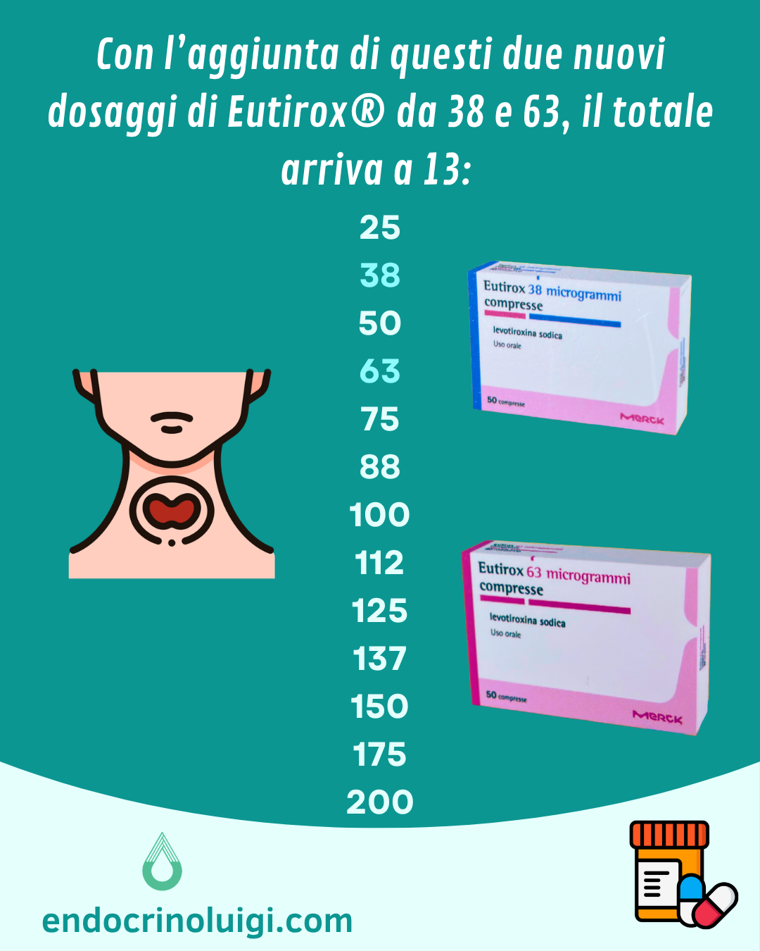 Di recente sono stati introdotti nuovi dosaggi di Levotiroxina Sodica in compresse (Eutirox®):